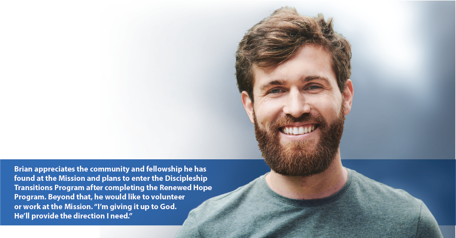 “I fell back into all my old habits,” Brian admits. “Before I knew it, I was breaking the law again.” Six months later, the friend he was living with kicked him out. He had nowhere to go except back to Hope Gospel Mission.