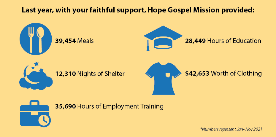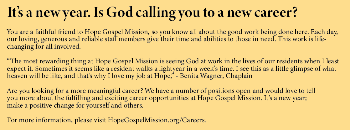 Hope Gospel Mission relies on volunteers every day. From helping clean up to befriending and helping someone in need, our volunteers impact the lives of so many.