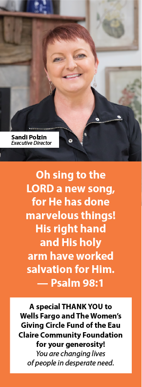 “I was reading through the Old Testament - one chapter per day. After I read the chapter in Job where he had lost everything and his friends first came and comforted him, I reflected and offered a prayer of gratitude that God had placed friends in Job’s life when he needed them. That’s when I felt a prod telling me that there are people in Eau Claire who have lost everything too and need someone to comfort and encourage them. As I prayed further on this, it became clear that God was calling me to minister to the homeless in Eau Claire which ultimately led me to Hope Gospel Mission,” Cam shared.