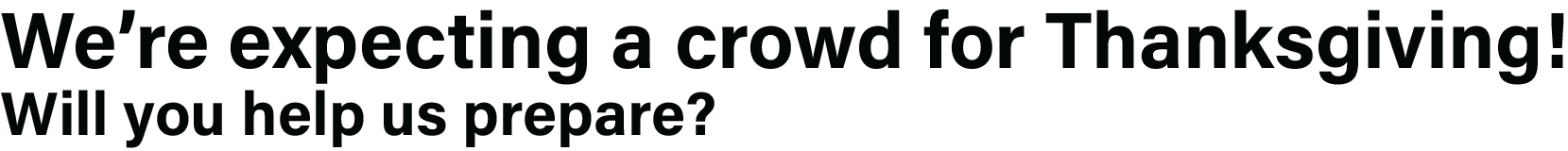 We will start getting ready the week before and continue until Thanksgiving Day. Many faithful volunteers help everything run smoothly to make this day a success.